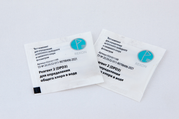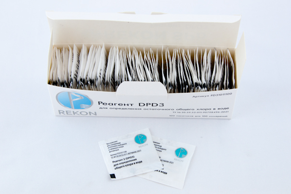 Тест комплект DPD-3 - на 100 измерений. Комплект содержит 100 саше-пакетиков для измерения общего хлора на различных фотометрах. Одно саше рассчитано на пробу воды объемом 10 мл.