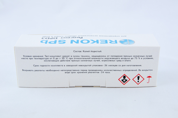 СОСТАВ: EDТA, натрий гидро-фосфат, калий дигидро-фосфат, N,N-Диэтил-1,4- фенилен-Диаммоний сульфат, калий йодистый.